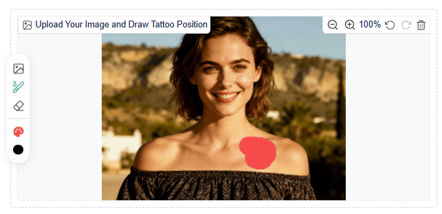 1. Upload your photo and mark the tattoo area. Upload a clear photo showing the target body part. Then, use the brush to mask the area where you’d like the tattoo placed.