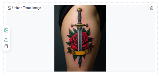 2. Add your tattoo design. Upload any tattoo image you love, or create a completely custom design that fits your vision with our AI Tattoo Generator.